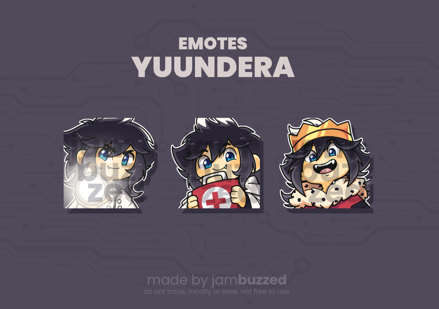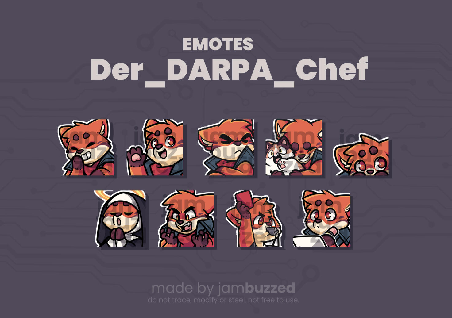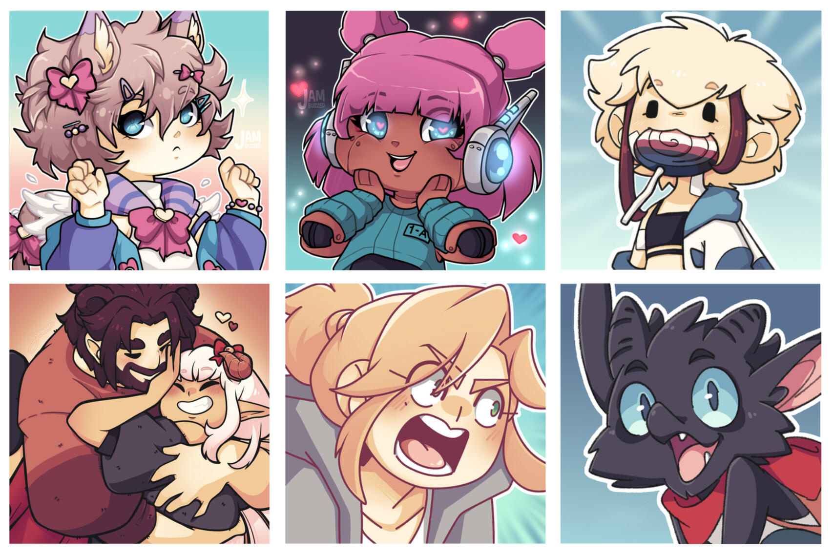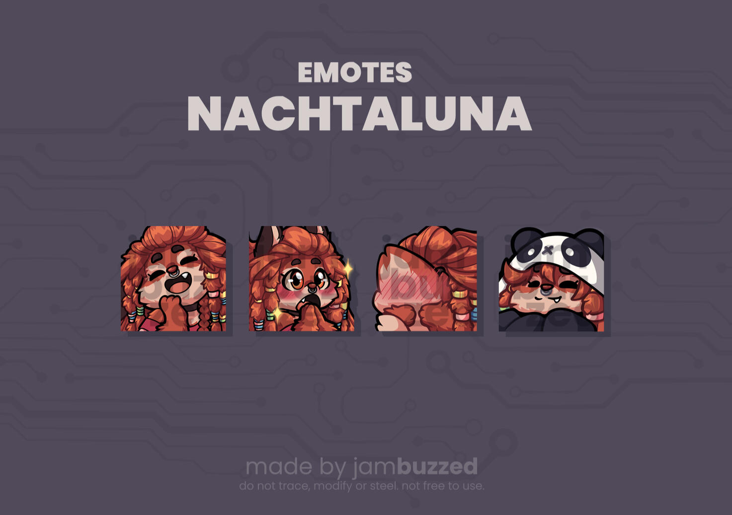 arbeite ich regelmäßig an aufträgen für privatpersonen und streamer. von emote commissions über png-tuber bis hin zu illustrationen für print und eigenbedarf ist alles dabei.