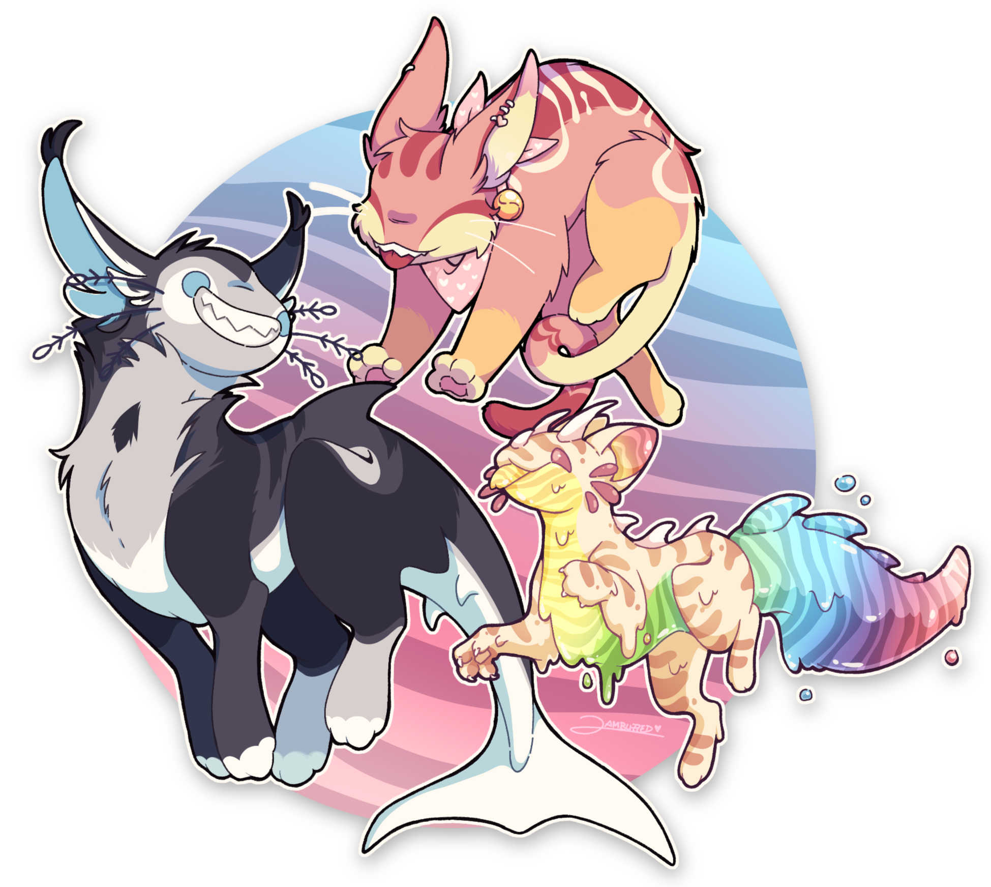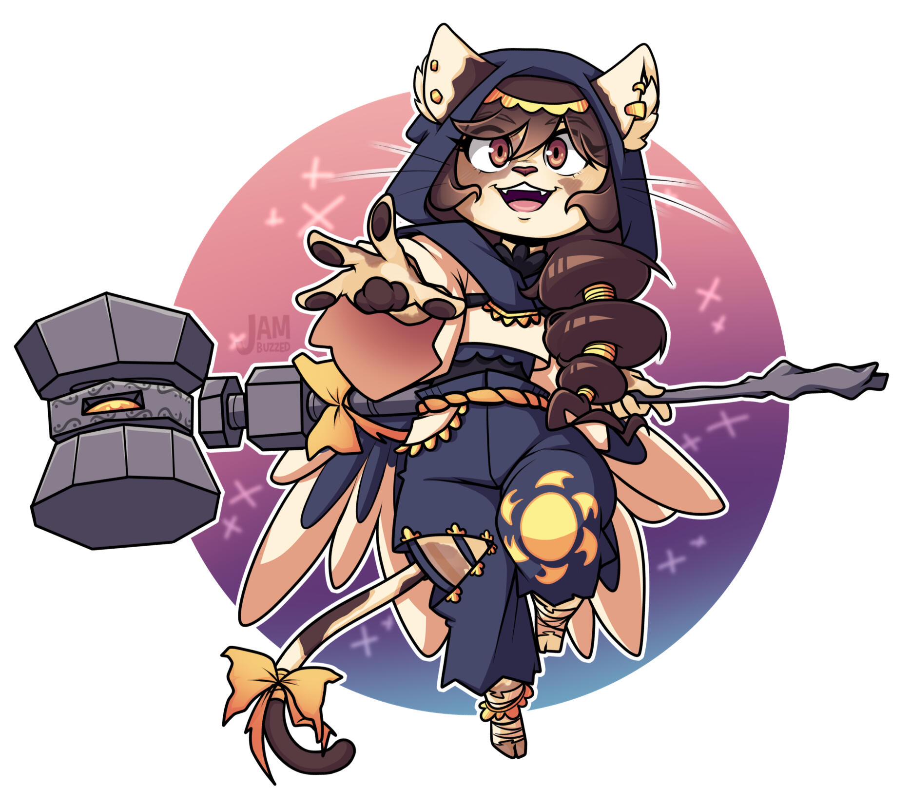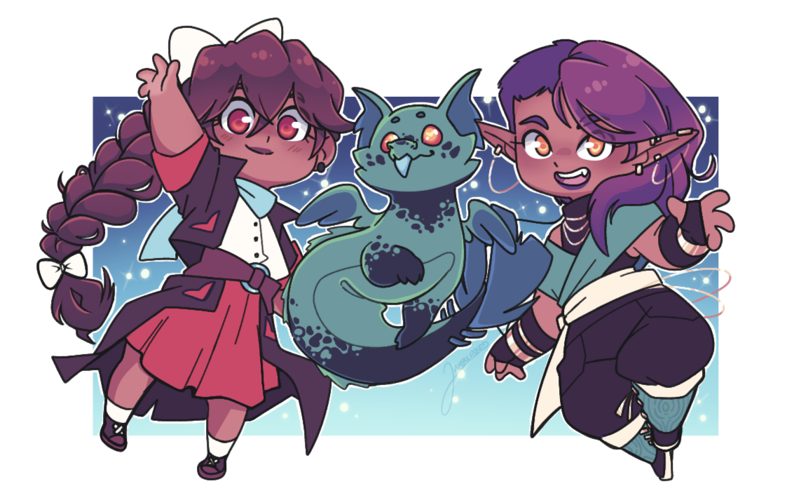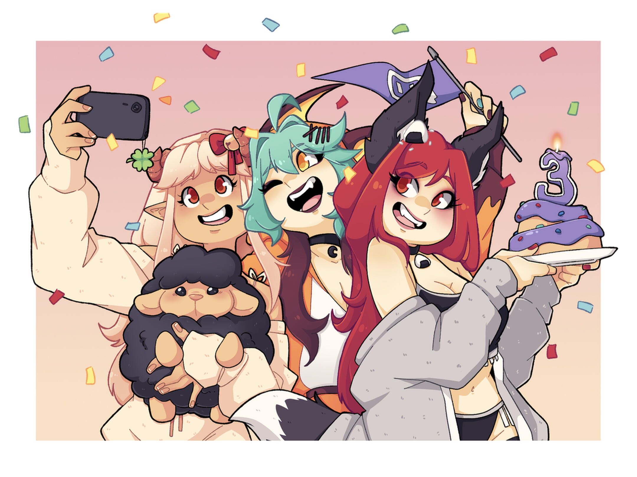arbeite ich regelmäßig an aufträgen für privatpersonen und streamer. von emote commissions über png-tuber bis hin zu illustrationen für print und eigenbedarf ist alles dabei.