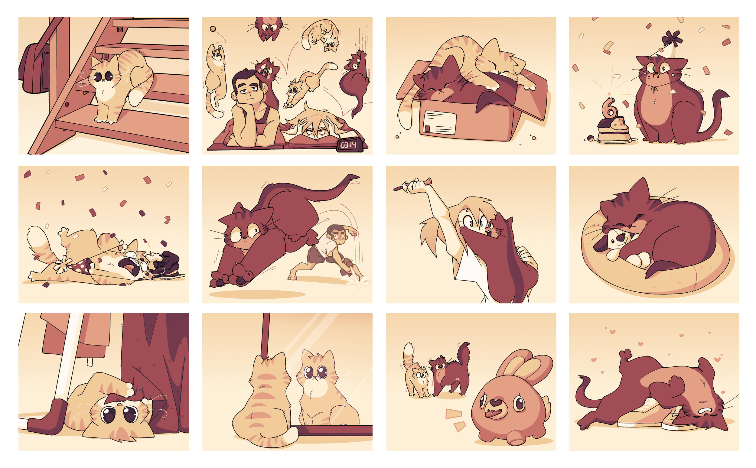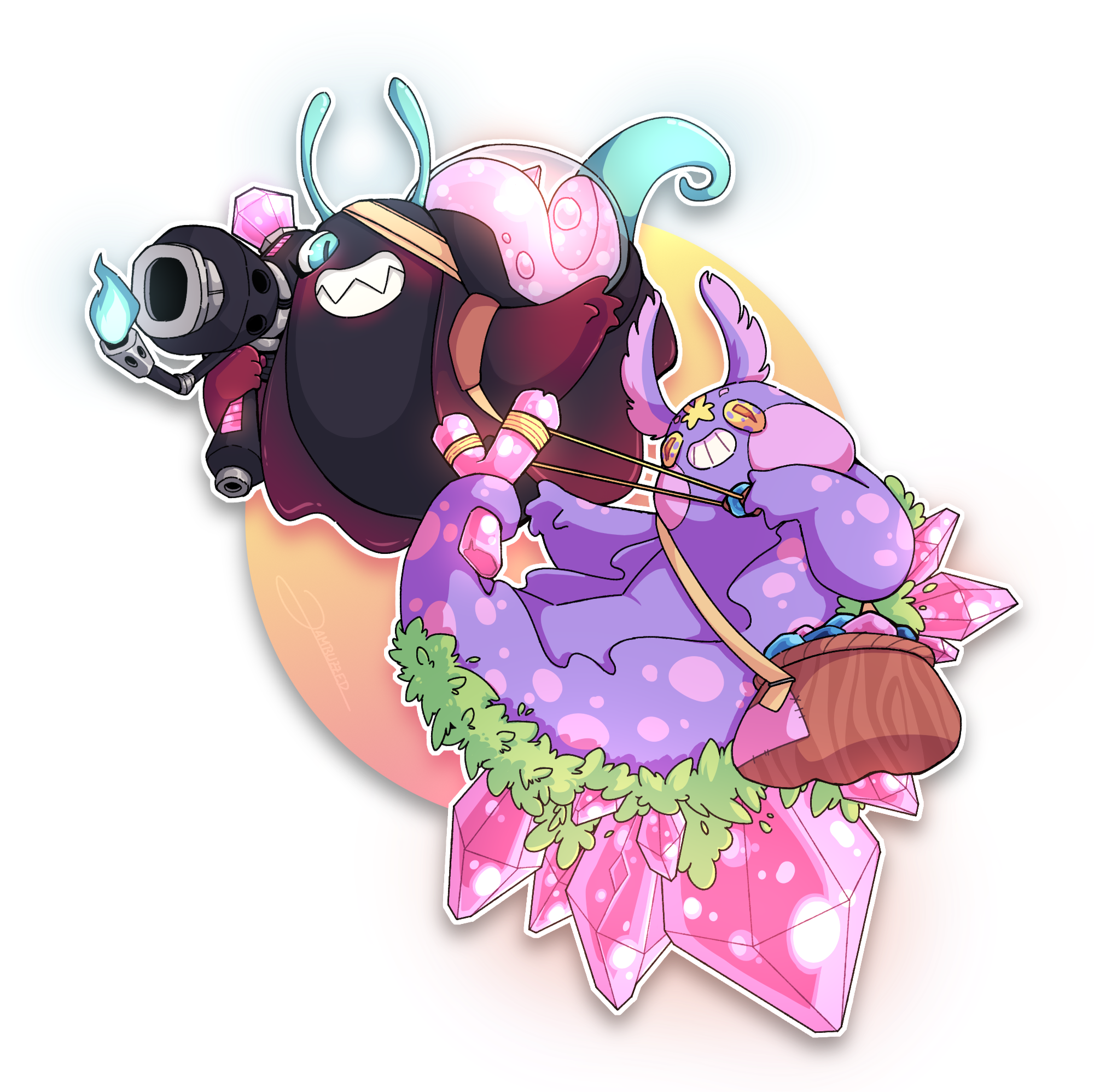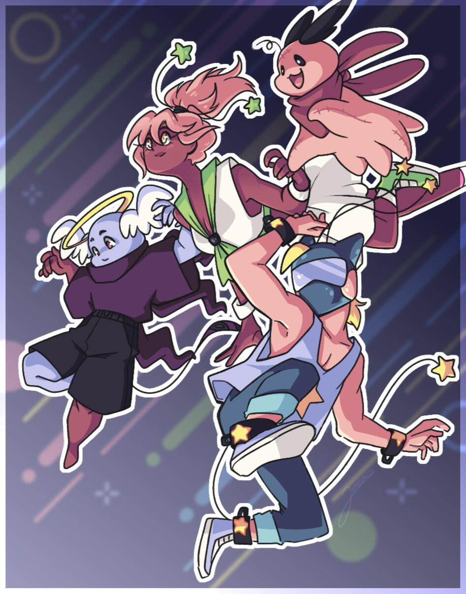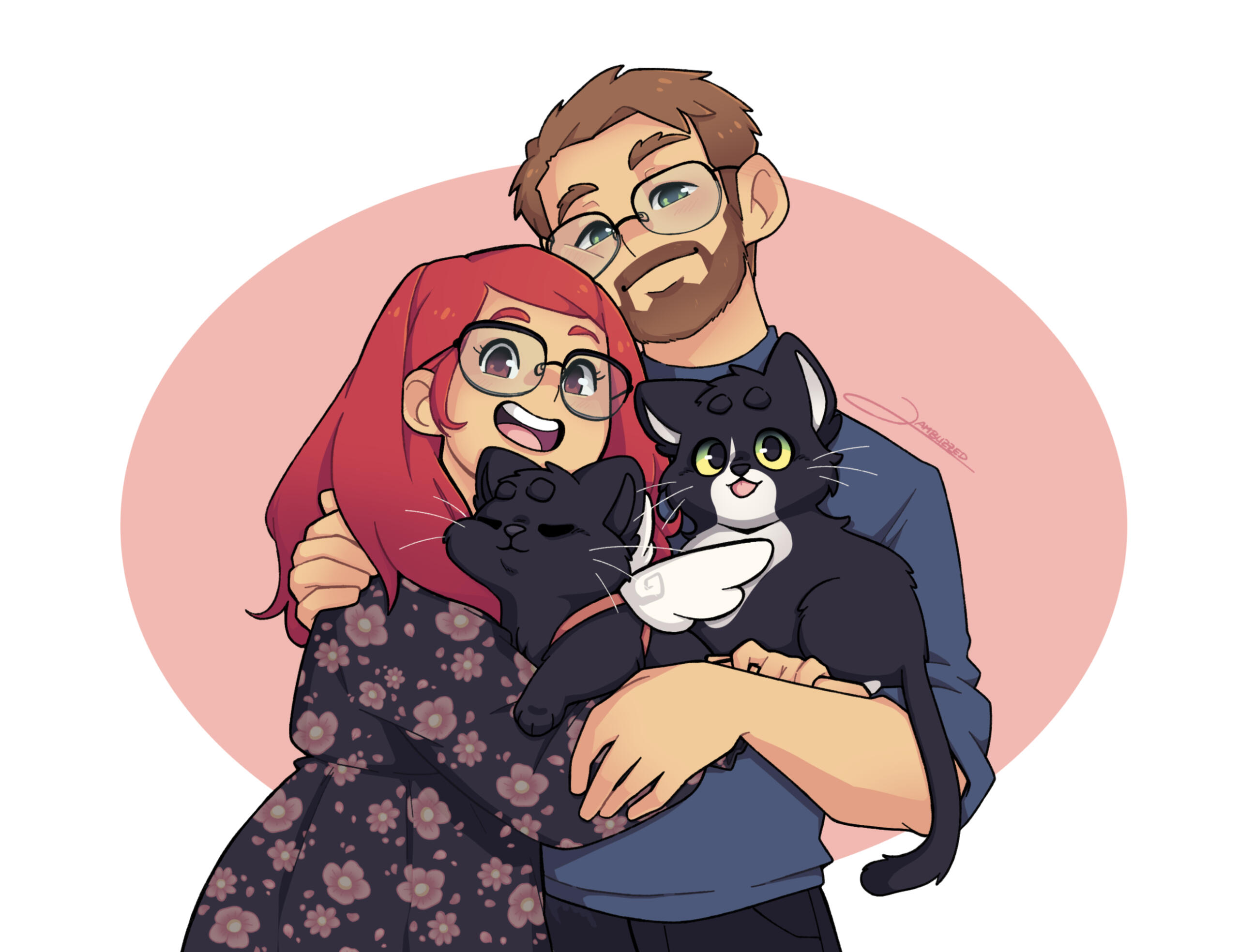 arbeite ich regelmäßig an aufträgen für privatpersonen und streamer. von emote commissions über png-tuber bis hin zu illustrationen für print und eigenbedarf ist alles dabei.